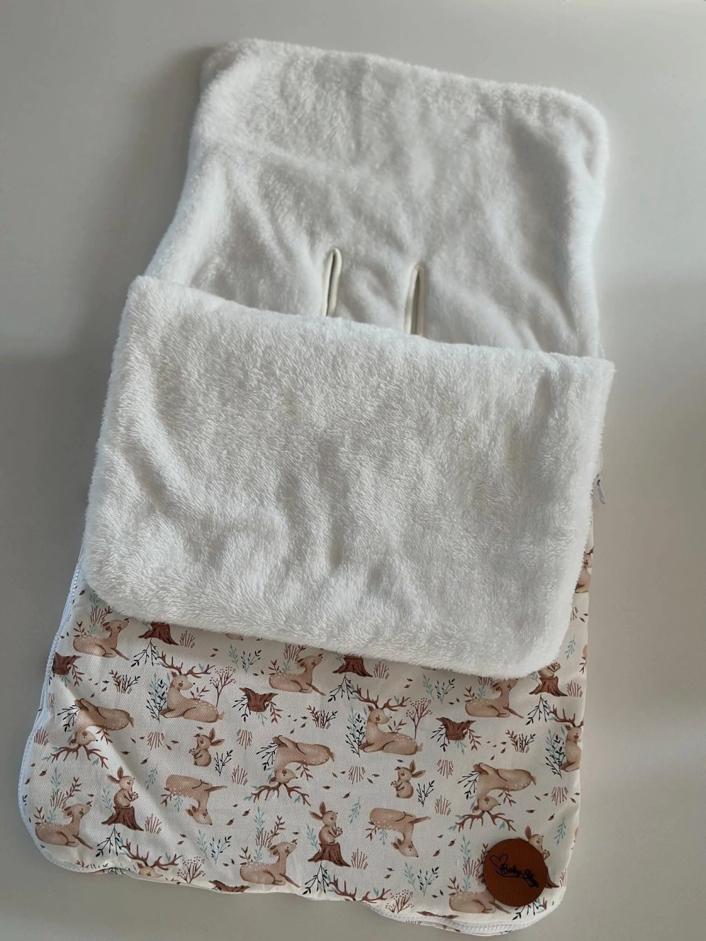 Están hechos de gabardina, forrados con corderito, tienen colchón de guata para mejor comodidad, doble cierre desmotable para que sea más fácil sacar al bebé.